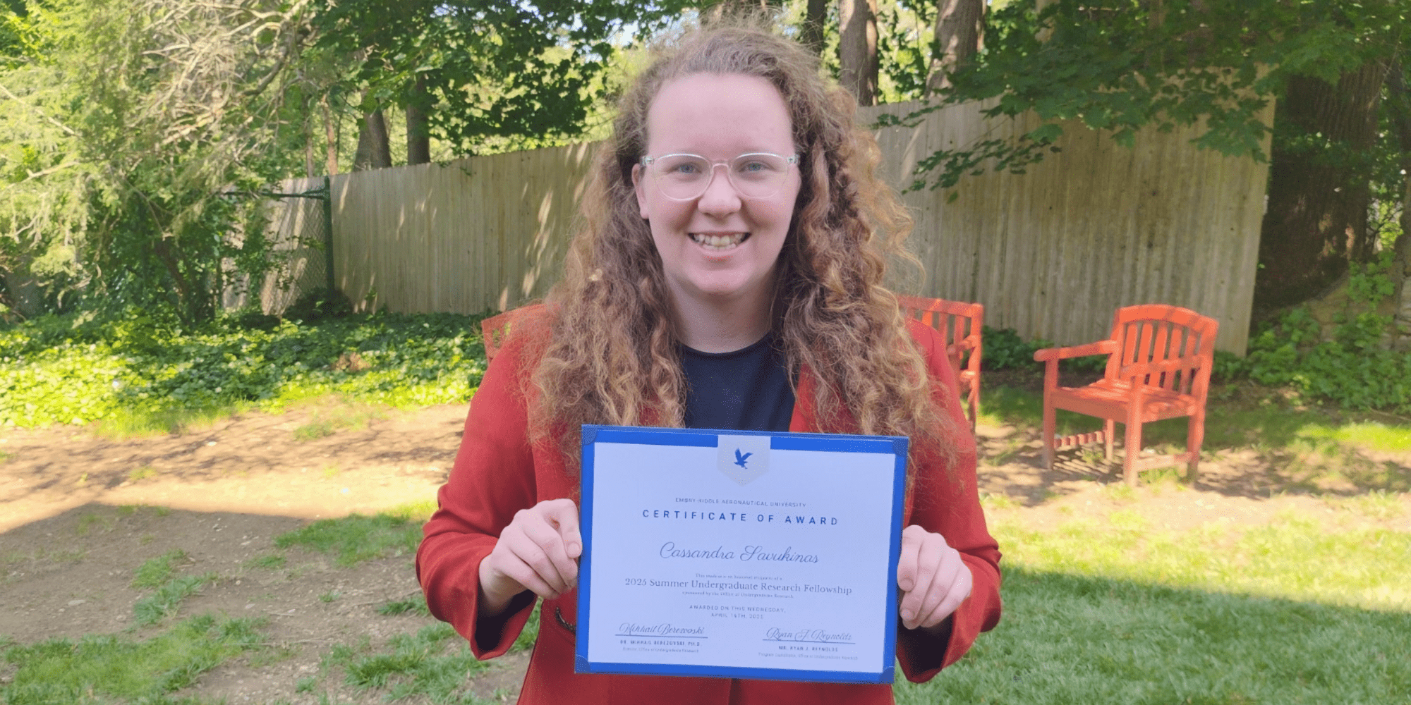 Cassie challenges herself to learn through working in interdisciplinary environments. The Aerospace Maintenance Council Competition is an annual competition that allows current and future maintenance professionals to compete in categories from commercial airline and general aviation to space. Cassie joined Embry-Riddle’s competition team in 2023 as a first-year student, and the team won first place in the school division. She was the only non-maintenance student on the team. Cassie competed again in 2025, finishing first in an individual event, and the team won the AireXpert Dream Team award.